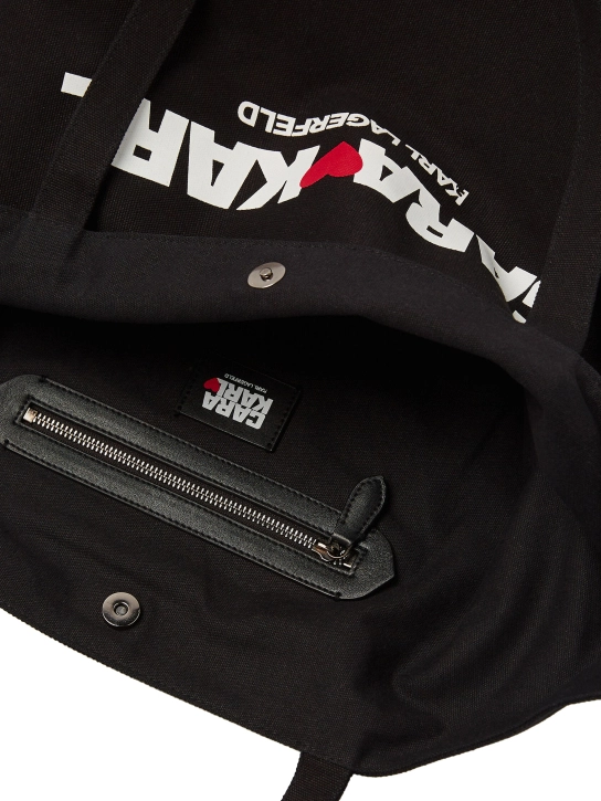 Οι tote bags αποτελούν τις πιο βολικές και ευέλικτες προτάσεις για τη γυναίκα, για όλες τις ώρες της ημέρας. Αυτό το σχέδιο ανήκει στην αποκλειστική συνεργασία του οίκου Karl Lagerfeld με την ηθοποιό και μοντέλο Cara Delevingne. Είναι άνετη, ευρύχωρη και διαχρονική. Το μέγεθός της είναι ιδανικό για να χωρέσει όλα τα πράγματα που χρειάζεστε από το πρωί μέχρι το βράδυ και ταιριάζει με τα πάντα, όποιο και αν είναι το προσωπικό σας στυλ.