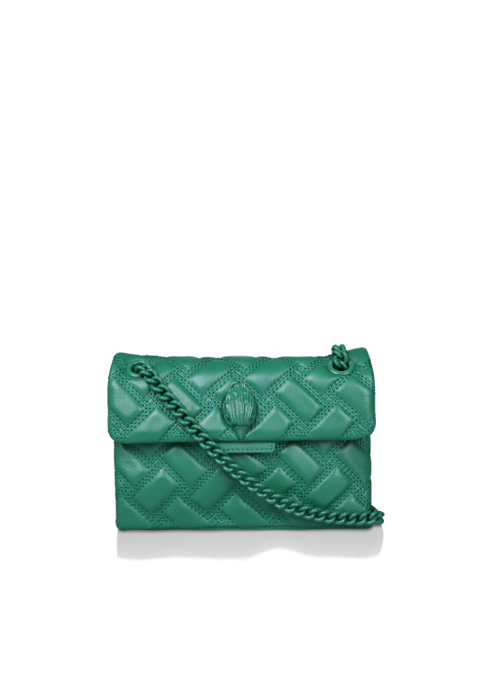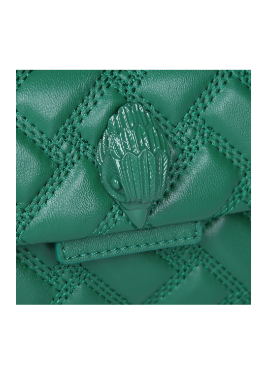 Μια μονόχρωμη παλέτα συμπεριλαμβανομένου του υλικού τονικής αλυσίδας και της χαρακτηριστικής κεφαλής αετού αναδεικνύει την εκλεπτυσμένη γοητεία μιας καπιτονέ δερμάτινης τσάντας ώμου του οίκου Kurt Geiger.