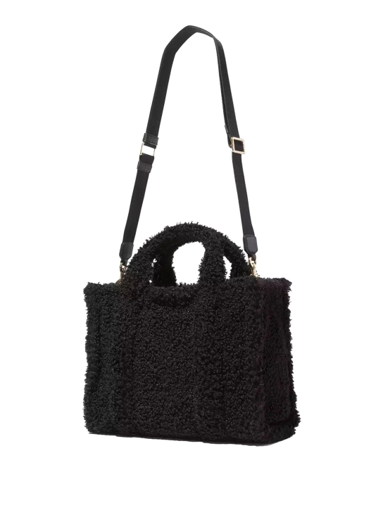 Μια παραλλάγη της small tote bag με υπογραφή Marc Jacobs που θα φέρει αέρα ανανέωσης στην γκαρνταρόμπα σας. Πρόκειται για μια μοναδική τσάντα φτιαγμένη από ύφασμα teddy που θα κάνει κάθε σας εμφάνιση ξεχωριστή. Κλείνει με φερμουάρ προστατεύοντας έτσι τα προσωπικά σας αντικείμενα ενώ επίσης διαθέτει και αποσπώμενο χαστί ιμάντα.