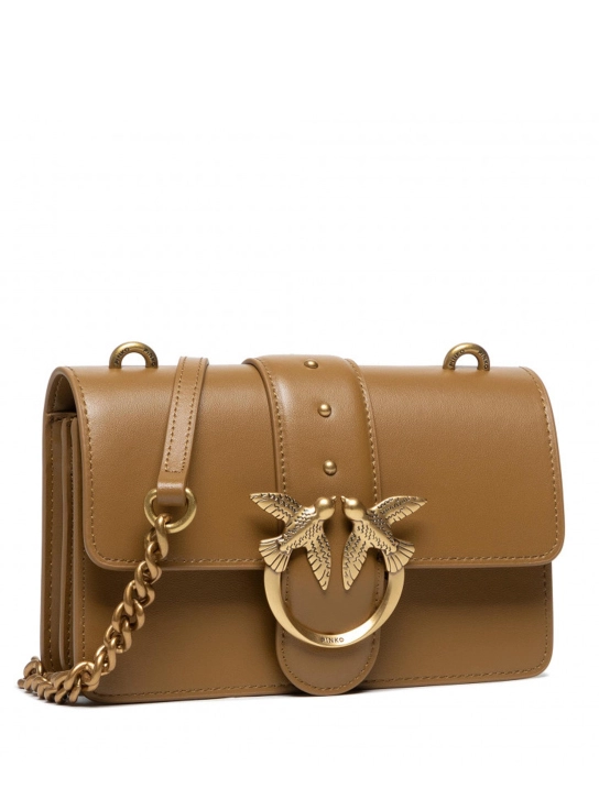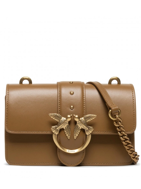PINKO ΔΕΡΜΑΤΙΝΗ ΣΤΑΥΡΩΤΗ ΤΣΑΝΤΑ LOVE MINI ICON Καφέ