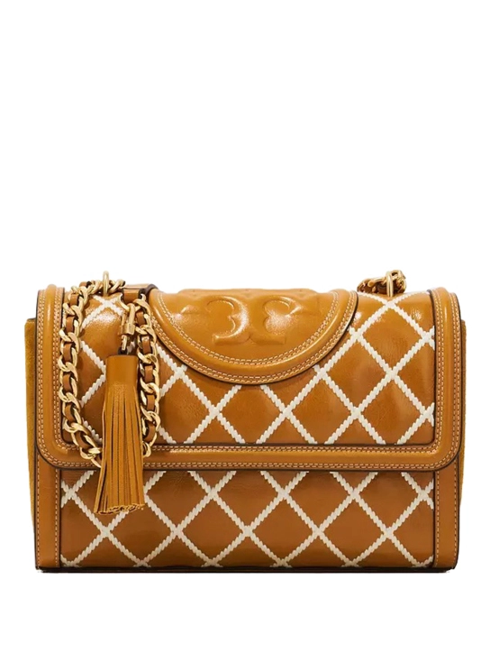TORY BURCH ΔΕΡΜΑΤΙΝΗ ΚΑΠΙΤΟΝΕ ΤΣΑΝΤΑ ΩΜΟΥ ΜΟΥΣΤΑΡΔΙ
