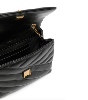 Η μαύρη Kira Chevron Mini τσάντα του οίκου Tory Burch ολοκληρώνει το λουκ σας με τον πιο στυλάτο τρόπο. Με χρυσές λεπτομέρειες που ξεχωρίζουν και με το διαχρονικό της χρώμα, χαρακτηρίζεται ως μία απόλυτα κομψή και ευκολοφόρετη τσάντα.
